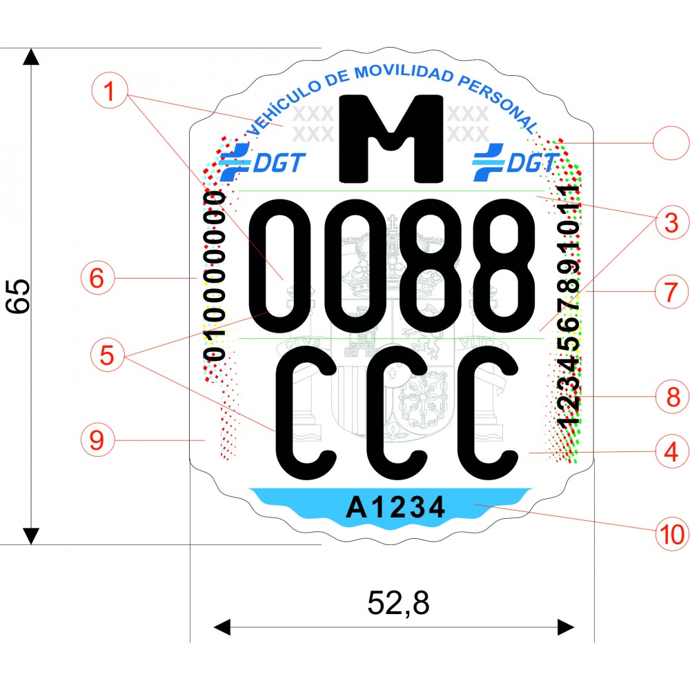 Fabricado en reflectante adhesivo Medidas 52,8 x 65 mm. Homologada